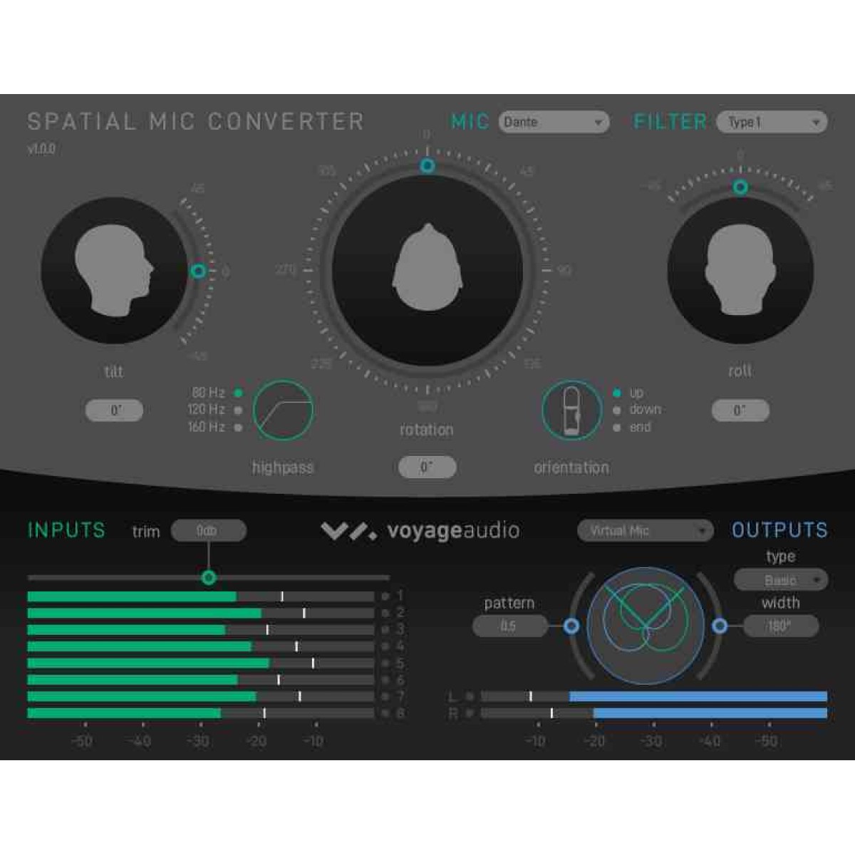 - Spatial Mic Converter plugin DSP filter type: 64-element frequency dependent output filter matrix