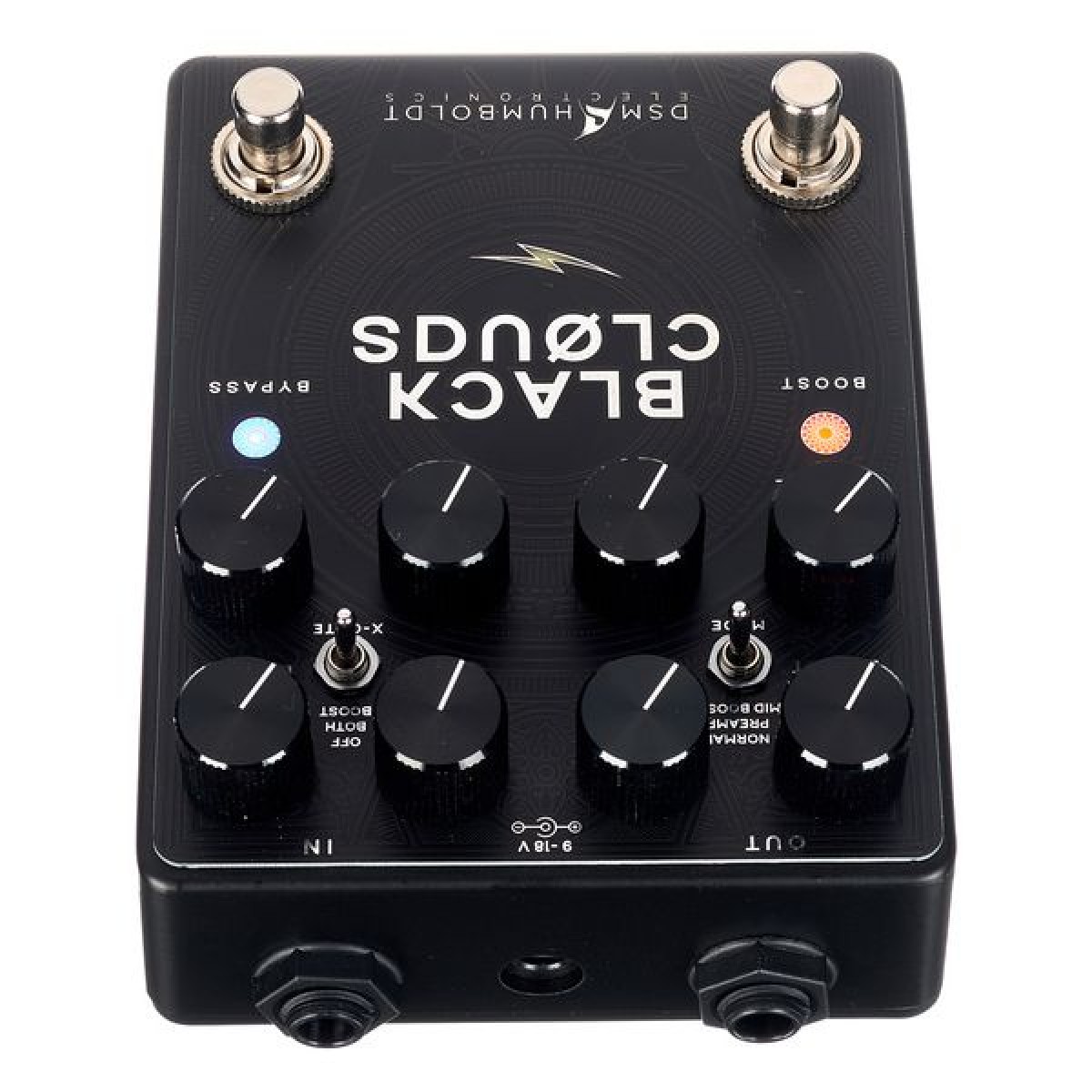 Black Clouds features an extensive and thoughtful control set that includes: Pre Boost: Controls the amount of input boost from 0 to 30dB with a slight mid boost to add definition. Use it if you want to raise the gain and compression when using the boost function. This control is not functional if the pedal is bypassed. Gain: Controls the gain, ranging from crunch to high gain mayhem. Level: Controls the output volume. Master Boost: Sets the amount of output clean boost, from 0 to 20dB. Use it to raise the volume when using the boost function. This control is still functional if the pedal is bypassed and can be used as an independent clean booster. Pre Tone: Use it to balance the amount of high or bottom end entering the drive circuit and compensate for different pickup characteristics for a consistent tone. Clockwise, the low end is reduced, and the top end is enhanced (for tighter, more aggressive chugs). Counterclockwise, the bottom end is enhanced, and the top end reduced (for fatter, fuller single lines). It’s great for finding the right balance of tightness without losing too much body for your pickups. RELEASED THROUGH Bass: Controls the low frequencies below 300hz, +- 10dB Mids: Controls the midrange response, between 300 and 2khz, +-12dB Treble: Controls the high frequencies above 2khz, +-15dB X-Gate Switch: X-gate is a passive noise gate that chops the silent passages instantly. It’s great for Djenty percussive breakdowns. It also adds crossover distortion which adds another layer of texture to the tone.