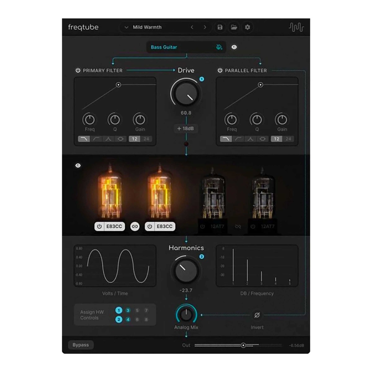 Automate all analog controls along with audio through the plugin. Enjoy harmonics auto gain compensation, ensuring consistent levels as you dial in saturation. Forget your MIDI patchboy, CV converter, daisy chains, and complicated routing.
