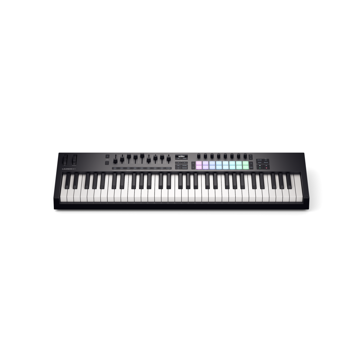 Find inspiration with Launchkey 61 – a powerful, all-in-one DAW controller with five octaves of semi-weighted keys and 16 patented FSR pads for finger drumming, clip launching, and more. You also get a bank of nine faders and eight endless rotary encoders for mixing, controlling plugins, and performing with built-in creative tools.