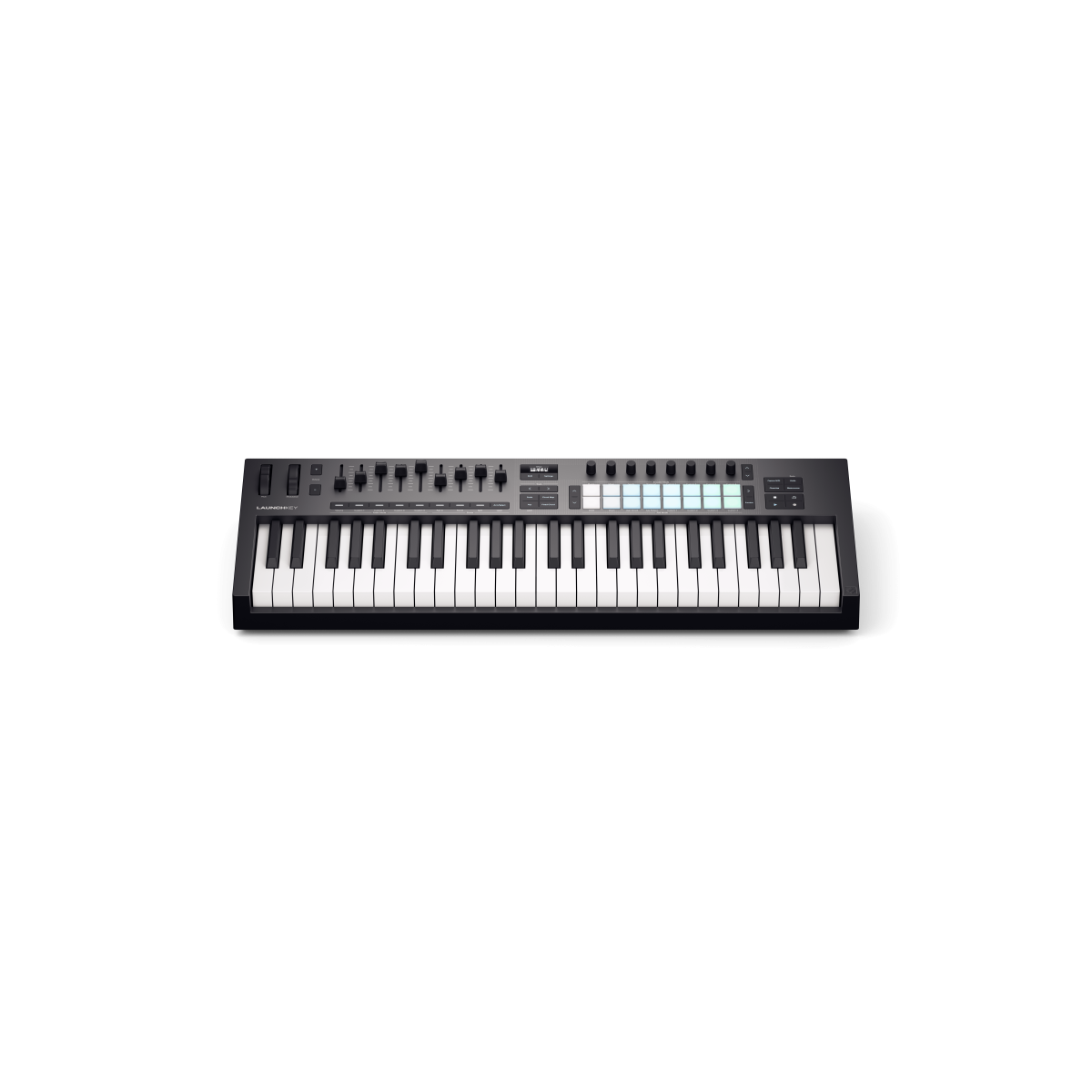 Find inspiration with Launchkey 49 – a powerful, all-in-one DAW controller with four octaves of semi-weighted keys and 16 patented FSR pads for finger drumming, clip launching, and more. You also get a bank of nine faders and eight endless rotary encoders for mixing, controlling plugins, and performing with built-in creative tools.