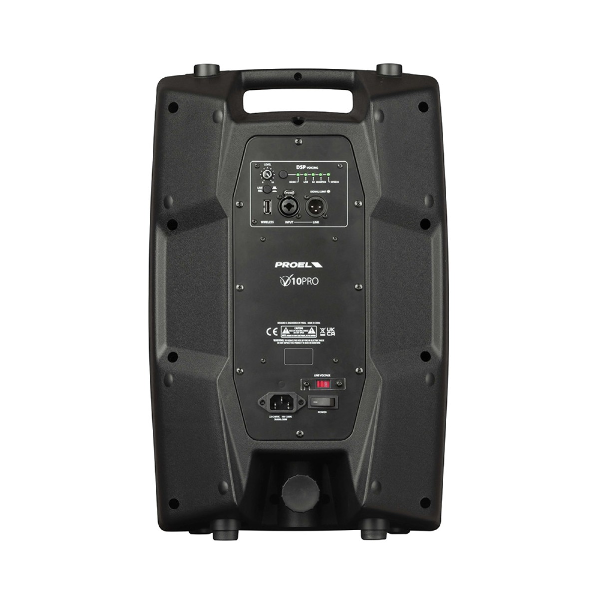 Thanks to the MIC/ LINE input and the WIRELESS USB input for the use of PROEL U24 microphone systems, the V PRO can be used in a variety of applications without external equipment.