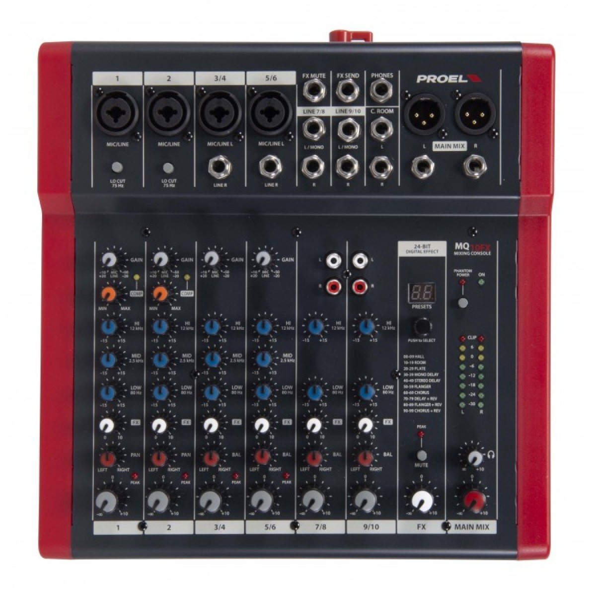 MQ is a series of mixers created by PROEL to offer in a very compact and stylish package a high input density, a full set of features and a superior audio quality, at a very convenient price point. The MQ series includes 5 models with 6, 10, 12 and 16 inputs, able to satisfy most of the sound reinforcement applications. Carefully designed and engineered in Italy by PROEL R&D, MQ mixers are hosted in ultra-rugged cases, providing extended durability for a stage-proof use.