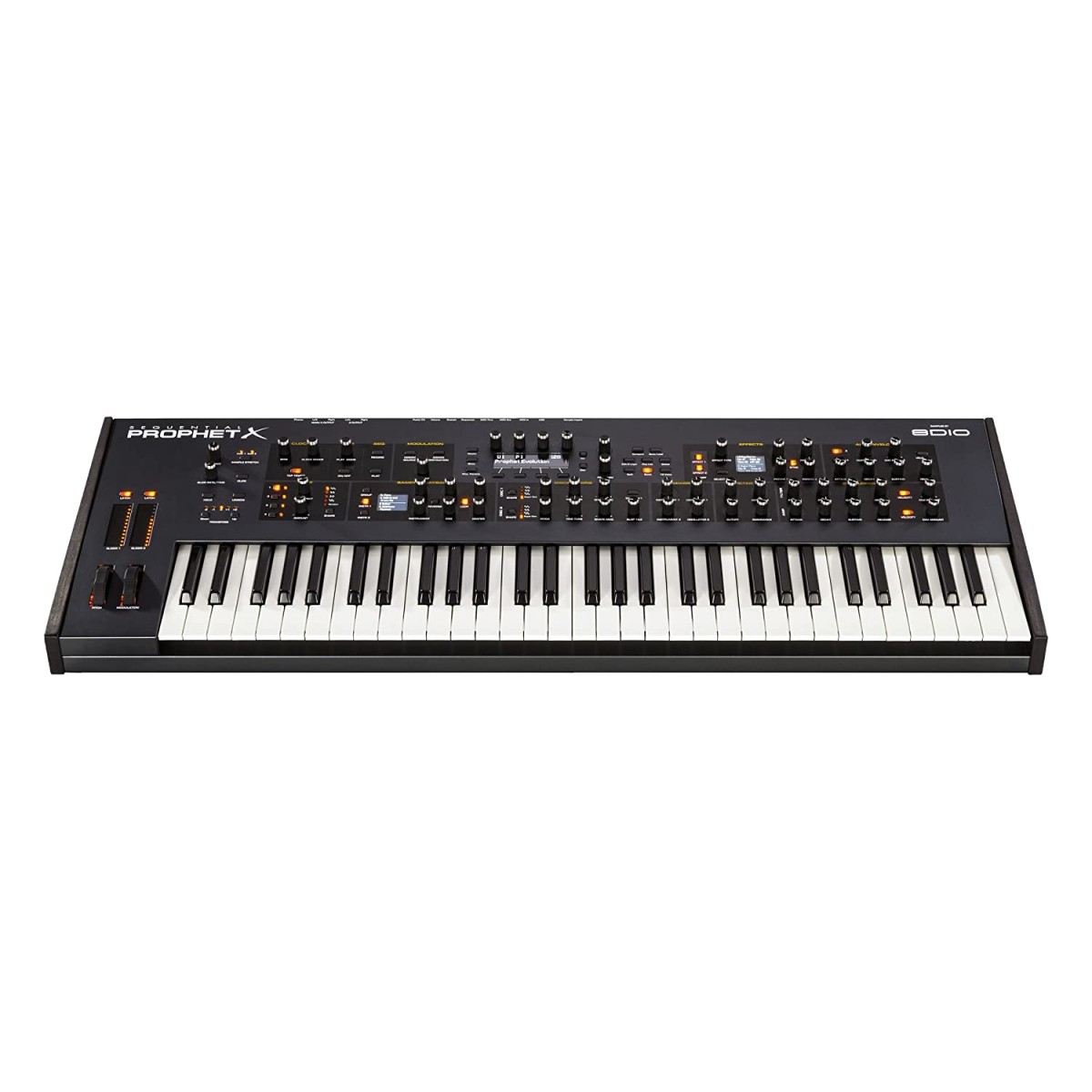 With loads of sonic firepower and personality, a five-octave, premium-quality, semi-weighted keyboard with velocity and channel aftertouch, an integrated power supply, MIDI USB support, and three crisp OLED displays, the Prophet X fits into any music rig or gig - in the studio or on the road.