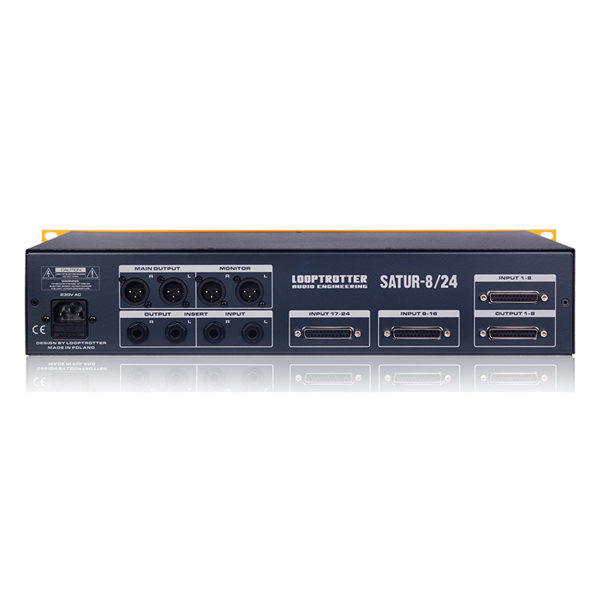 SATUR-8/24 is a 24 channel summing mixer containing 8 channels with analog, solid state saturation. The design refers to the sound of old tube mixing consoles and tape recorders.